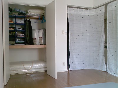Il me reste encore qu’à attendre le préposé au gaz qui doit m’ouvrir le compteur si je veux utiliser autre chose que l’eau froide pour ma douche. En attendant son arrivée prévue entre 13 et 15h, je range tout mon fatras dans le placard intégré qui achève de transformer définitivement mon appartement en intérieur japonais dépouillé classique, et j’installe mes magnifiques rideaux IKEA pour dissimuler le coin cuisine et l’entrée ou la chambre, suivant le point de vue. L’attente sera courte, l’homme de la situation arrive à 13h30. Tout est en place (ou presque, j’ai pas encore choisi mon provider internet parmi la myriade existants) pour l’installation finale courant ou fin de semaine prochaine.