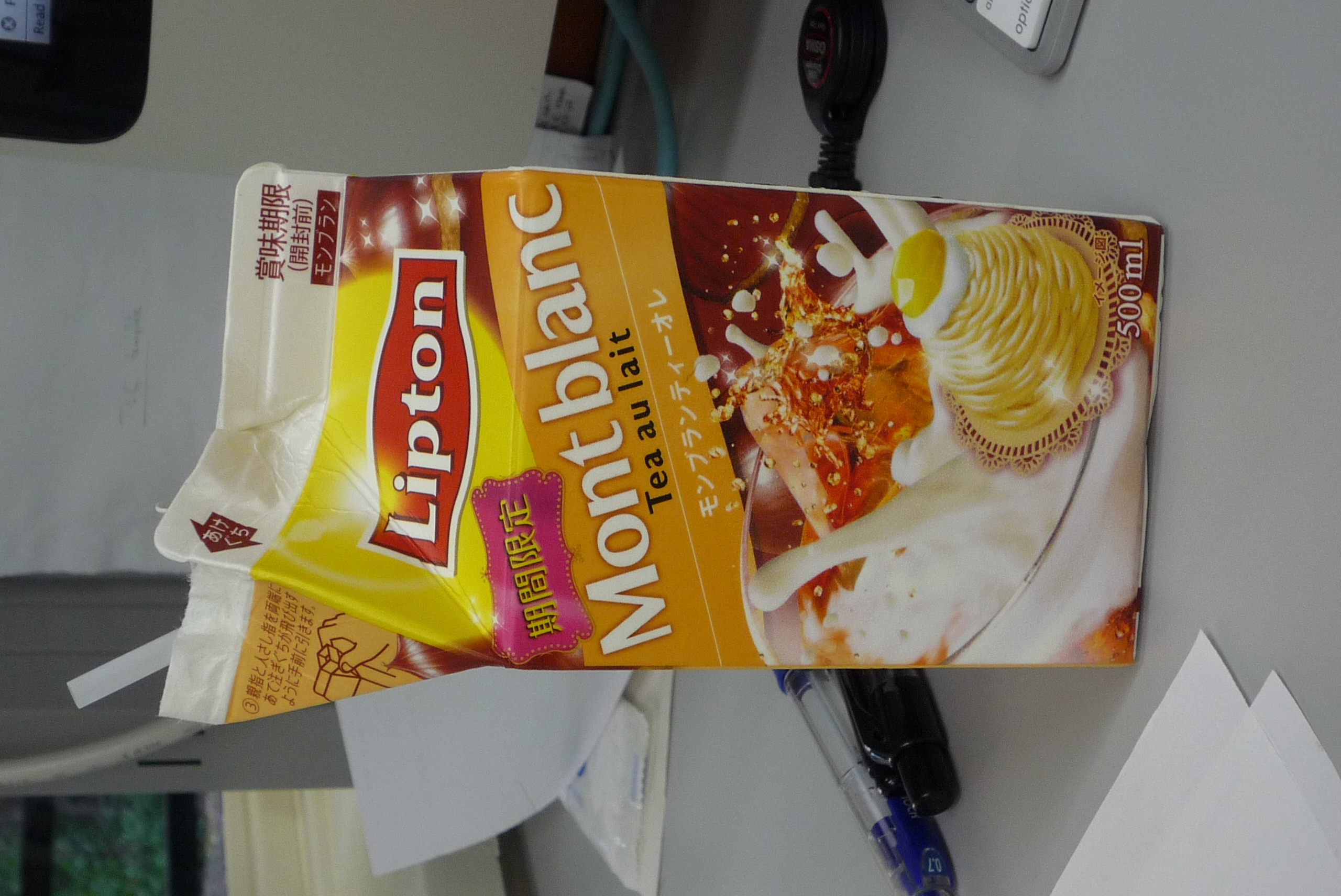Aller acheter un rafraîchissement au Japon c’est souvent l’occasion de tomber sur une nouvelle boisson, soit saisonnière genre thé a la pèche ou plus extravagante comme le thé au lait a la torche au marron d’aujourd’hui.