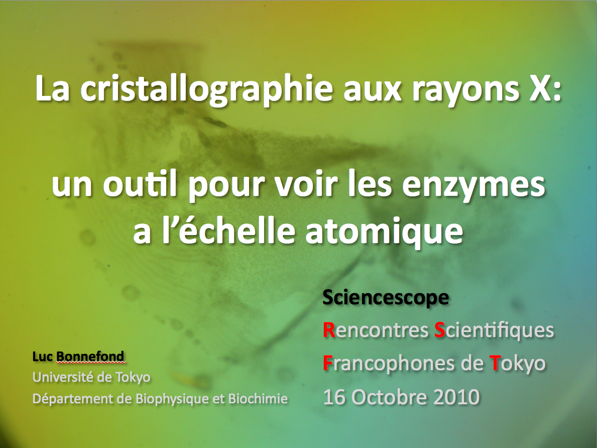 Mais heureusement un peu plus variée que celle qui m’entoure habituellement. Je participais pour la première fois a une des Rencontres Scientifiques Francophones de Tokyo, organisées par l’association Sciencescope des étudiants et chercheurs francophones au Japon (fin de la bannière publicitaire). Et pour cette première participation, j’ai été directement propulsé orateur, les candidats ne se poussant pas au portillon.