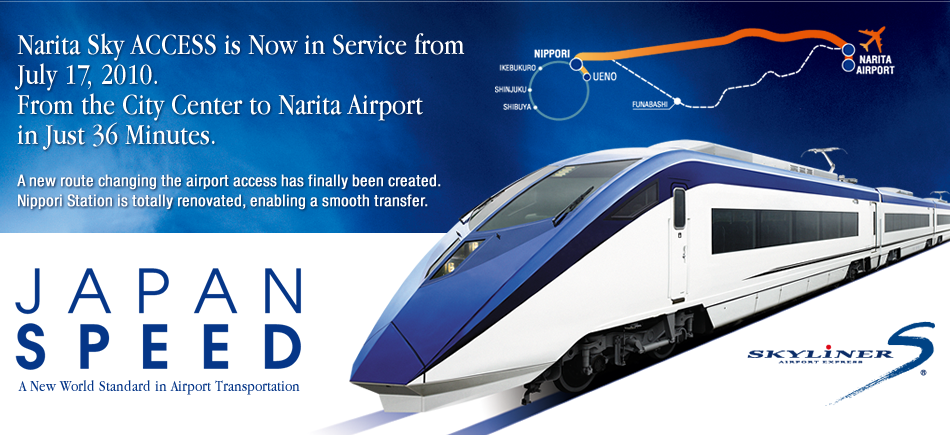 Alors je fais finir sur un peu de pub pour le nouveau train qui relie l’aéroport de Narita a Tokyo en un temps record, et que je vais utiliser très bientôt, le nouveau Skyliner. Je dis nouveau parce que ce train existe déjà, il a juste gagne en rapidité grâce a un nouveau trace plus direct qui fait passer le trajet de Ueno a Narita de 56 a 36 minutes, la folie. Bien sur il n’est pas aussi pratique que le Narita Express qui dessert les grandes gares de Tokyo, Shibuya et Shinjuku, ou les navettes qui passent prendre les touristes au pied des grands hôtels de la ville. Mais c’est le prix a payer pour gagner en efficacité, et en plus c’est moins cher.